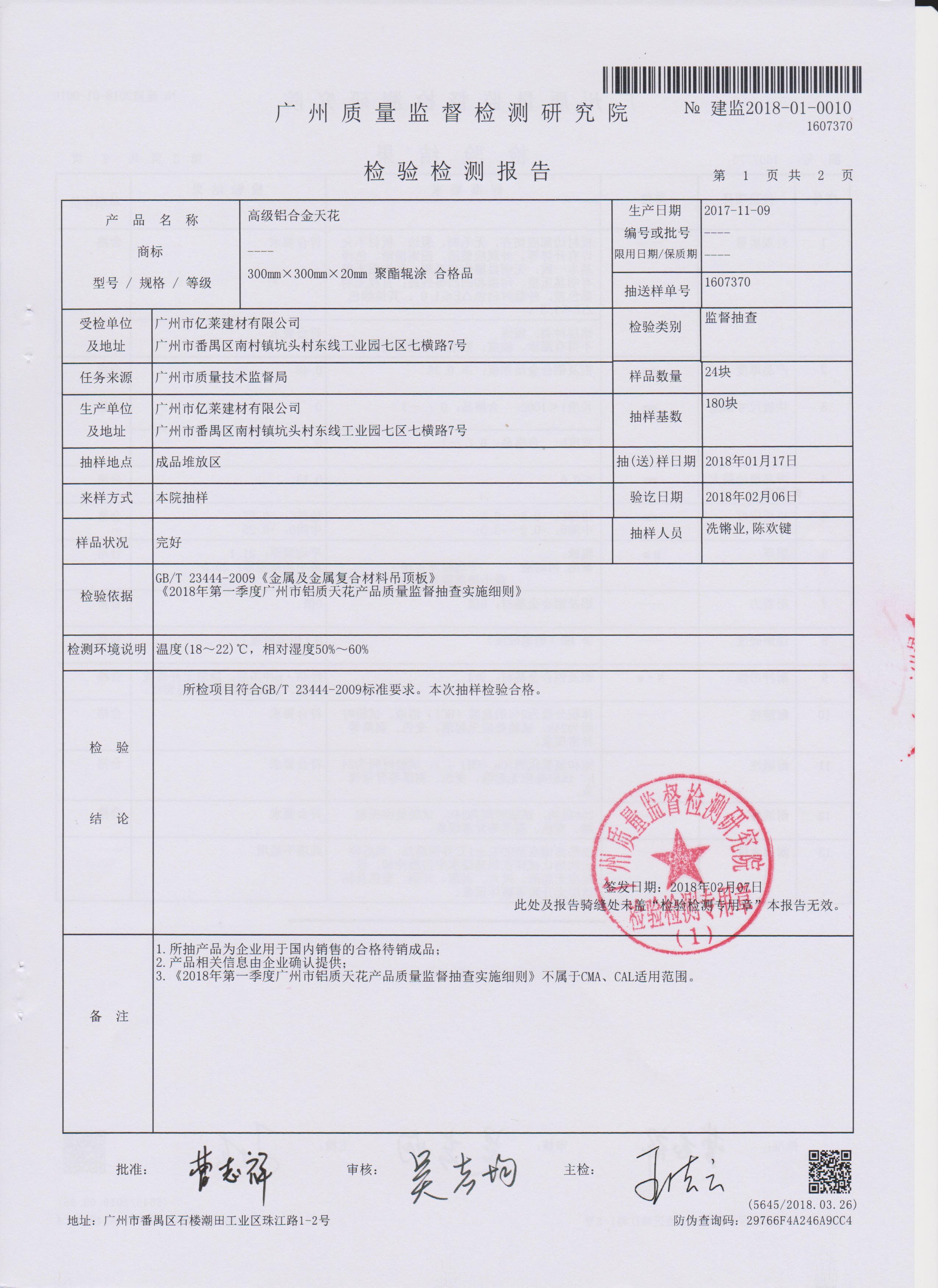高級(jí)鋁合金天花檢測(cè)報(bào)告
