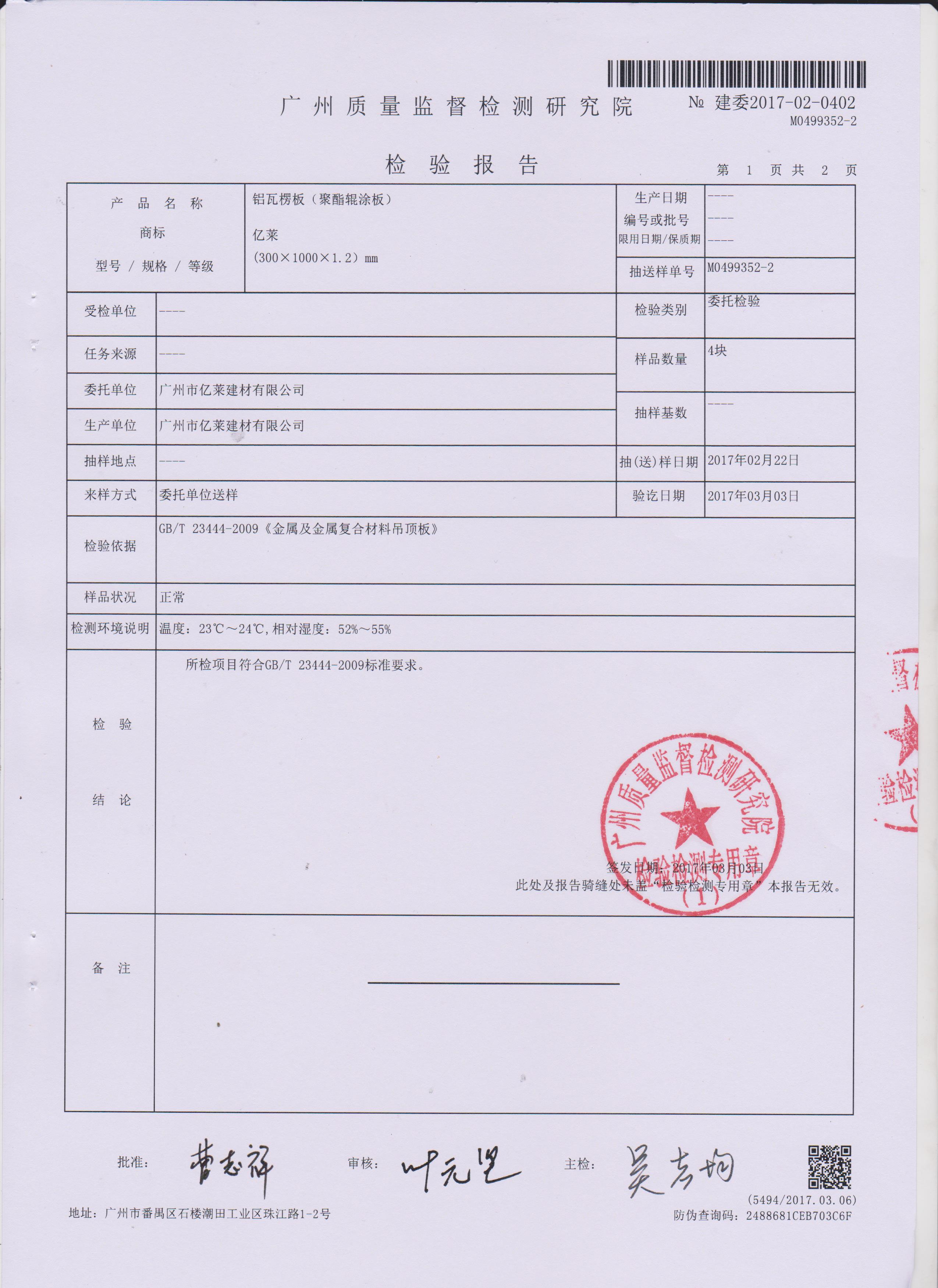 鋁瓦楞板(聚酯輥涂板)檢測(cè)報(bào)告
