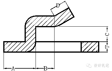| 4.10壓縮抽形1 (Rd≦1.5T) 原則:直邊部分按彎曲展開,圓角部分按拉伸展開,然后用三點切圓(PA-P-PB)的方式作一段與兩直邊和直徑為D的圓相切的圓弧. 當Rd≦1.5T時,求D值計算公式如下: D/2=[(r+T/3)2+2(r+T/3)*(h +T/3)]1/2 |