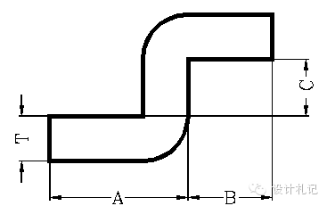 | 4.6 Z折1. 計算方法請示上級,以下幾點原則僅供參考: (1)當C≧5時,一般分兩次成型,按兩個90°折彎計算.(要考慮到折彎沖子的強度) L=A-T+C+B+2K (2)當3T<C<5時<一次成型>: L=A-T+C+B+K (3)當C≦3T時<一次成型>: L=A-T+C+B+K/2 |